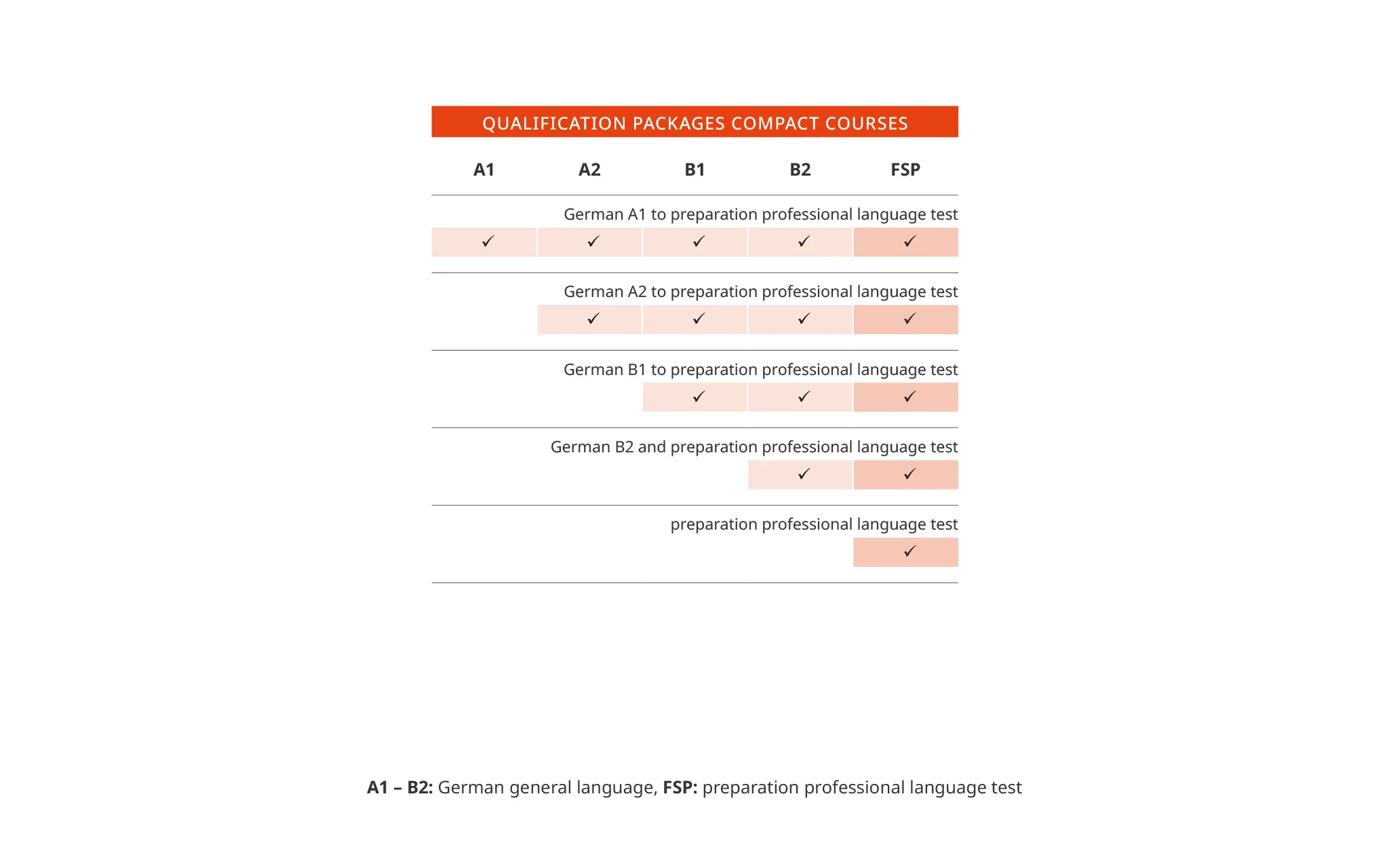 - التمويل: معتمدة من AZAV ومؤهلة للحصول على تمويل من المؤسسات العامة مثل وكالة التوظيف ومركز العمل