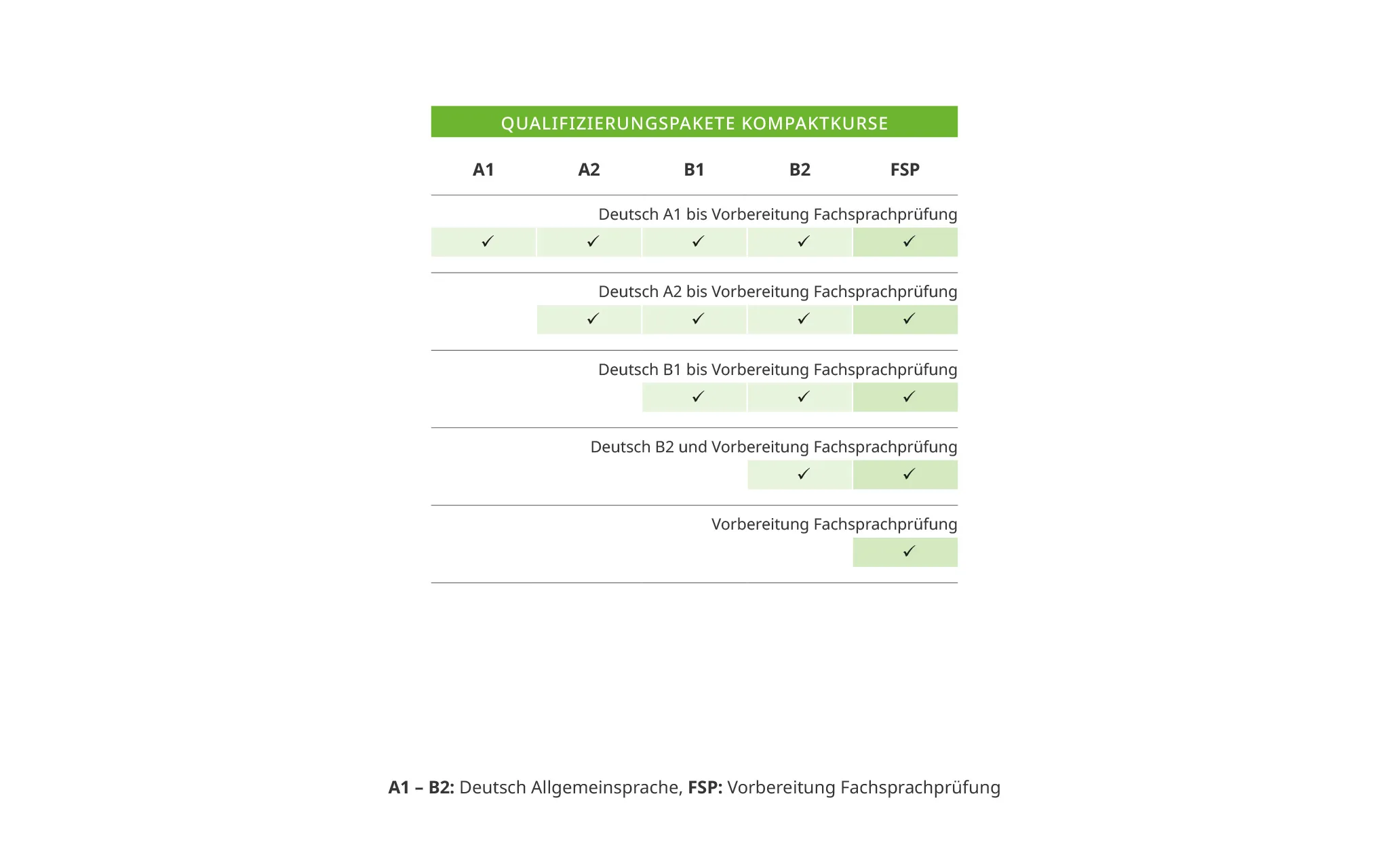 - Kursdauer: 2 Wochen, 100 Unterrichtseinheiten (Vollzeit)